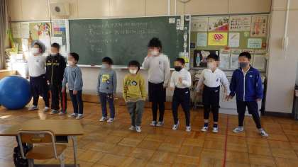 大きなかぶに見立てたボールを使って、おじいさんやおばあさんや孫や動物の役を児童が演じ、物語に合わせて、力を合わせて役割演技をしていきました。