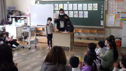 1年生は「できるようになったこと」発表会として、入学してから今までに、学習や運動、音楽や図工や趣味や得意とする分野まで、いろいろな内容で「できるようになったこと」を発表しました。