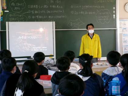6年生は総合的な学習で地元に伝わる味噌作りを学び、実際に作ります。卒業式前には春に仕込んだ豆が、立派な味噌になり、収穫の喜びを味わいます。