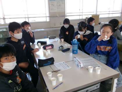 5年生はその「味噌」について、学びました。歴史や作り方、そして実際の試飲です。
