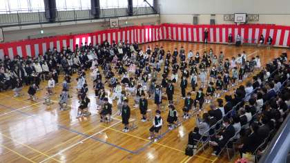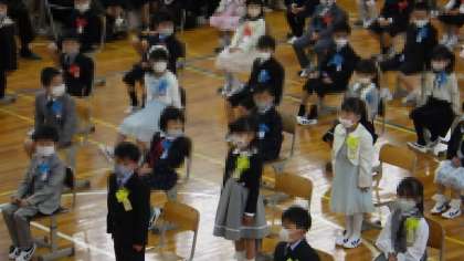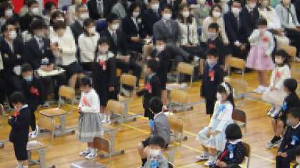 担任の先生から名前を呼ばれたら、大きな声の返事とともに、立っていきます。