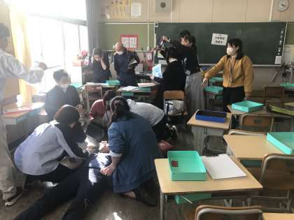 4月13日の児童下校後に、豊田消防署の方を講師にお招きし、食物アレルギー対応研修を行いました。