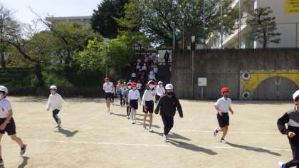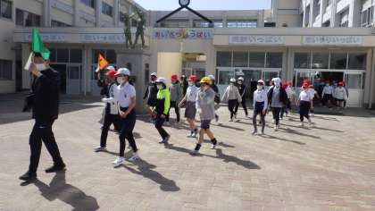 教頭先生の避難指示の放送から全校が運動場に整列するまで5分とかかりませんでした。