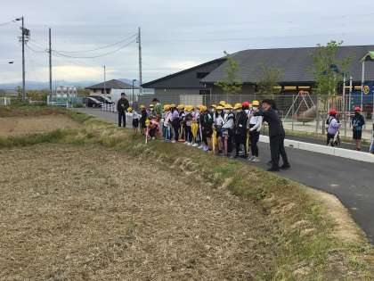 25日、5年生が田植えをする田の見学を行いました。