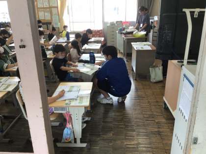 上郷中学校の2年生3人が高嶺小学校に職場体験学習に来ました。