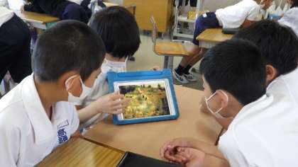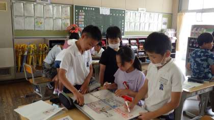 4年生が、グループで対話をしながら考えを広げたり深めたりする学習をしています。人によって感じ方がちがうことに気付いたり、一人では気付かなかったことを発見したりして学びを深めているようです。