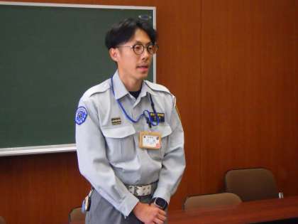 22日(木)給食の時間に南消防署の方が来て、全校にオンラインで「熱中症予防」についてお話をしてくださいました。