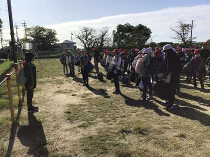 いつものように登校後、運動場で出発式を行いました。