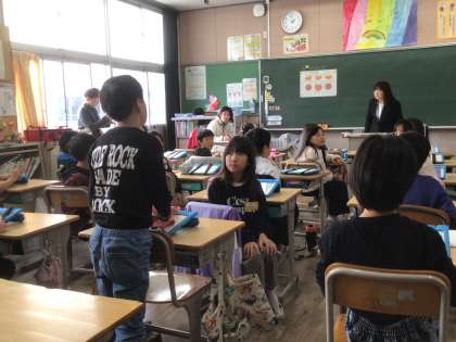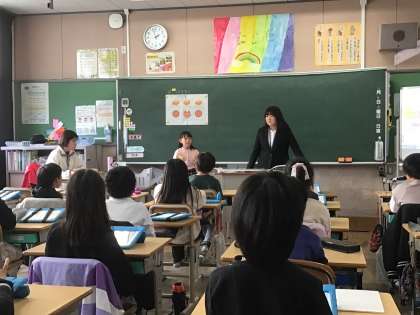 今日の5時間め、3年生のクラスで算数の研究授業を行いました。
