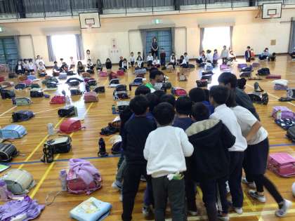 防犯教室では、実際に大きな声で「助けて!」と叫ぶ練習もしました。