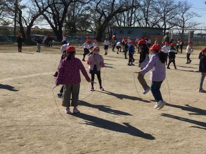 すっかり気温が下がってきましたが、高嶺小学校では今日からなわとび週間です。