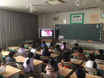1年生は防災に関するビデオを視聴しました。