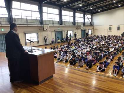 今年度の高嶺小学校の合言葉「やればできる」を、全員で力強く言いました。