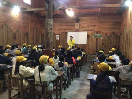 係の方にていねいに味噌について、教えていただきました。後日、6年生は味噌作りに挑戦します。