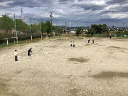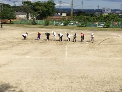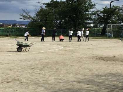 20日(月)児童が一斉下校で帰宅した後、先生たちでボール投げや幅跳び、50m走などの準備を進めました。