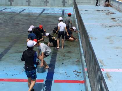 この後、水を入れ、水温を高めて、水泳指導ができる準備を整えていきます。