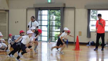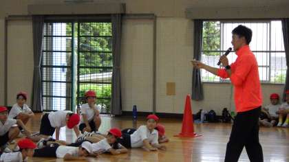 28日(火)東京五輪ならびにパリ五輪4×400リレー代表の川端魁人選手を講師にむかえ、「オリンピアによる走り方教室」が行われました。