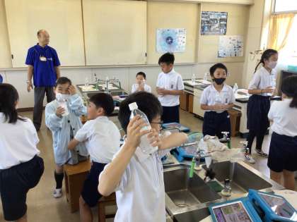 豊田市水道局の方を講師としてお招きして、4年生が出前授業を受けました。