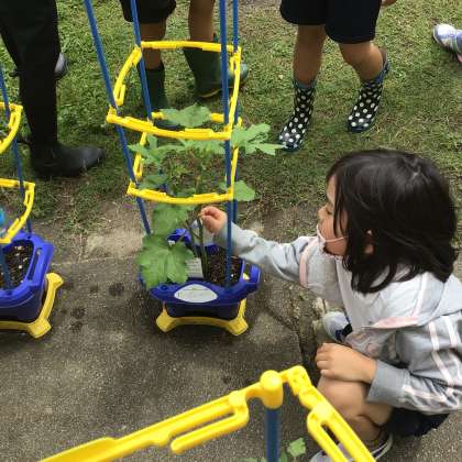 2年生が植木鉢で育てた野菜たちが実ってきました。