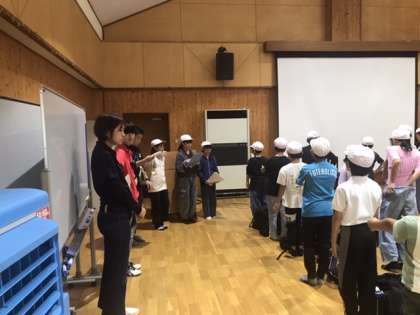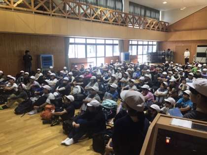 5年生が今日から2日間、豊田市の六所山自然の家で、山の学習を行います。 入所式の様子です。