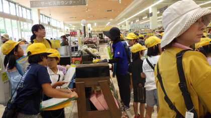 3年生が社会科の学習のため、校区にあるスーパーやまのぶを見学しました。