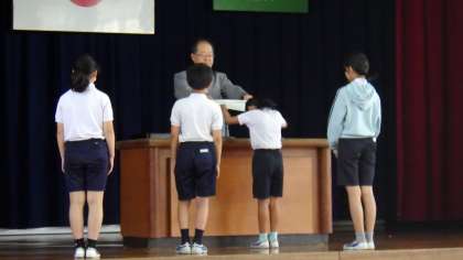 校長先生の話や校歌斉唱の他、表彰伝達なども行われました。