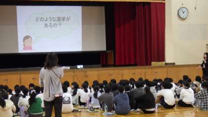 13日水曜日、6年生は選挙出前トークの授業を受けました。