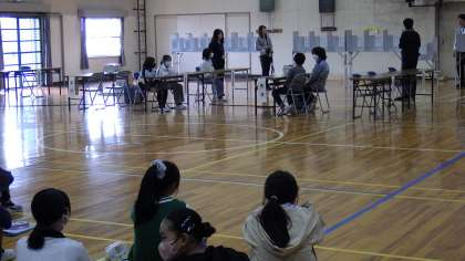 豊田市の選挙管理委員会の方が来てくださり、選挙の役割や仕組みなどをわかりやすく解説してくださいました。