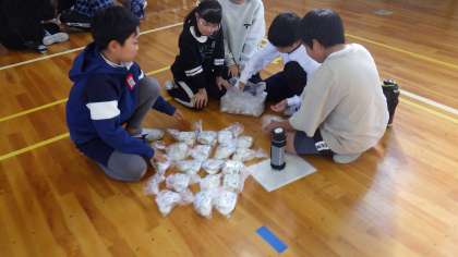 できたお餅は、5年生のみんなで分けて、全校に配りました。