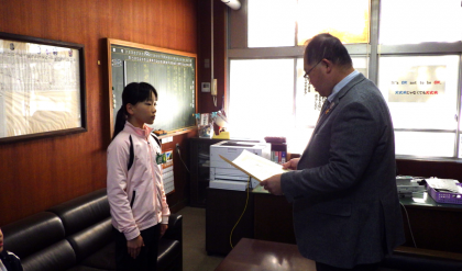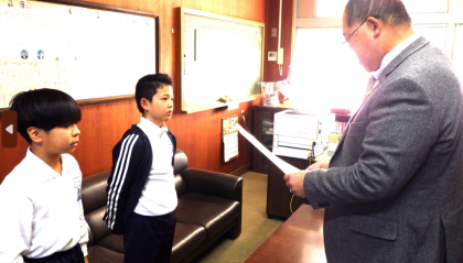 高嶺剣道クラブのみなさんが西三河剣道形大会にて、優秀な成績を収めましたので、校長先生より伝達表彰していただきました。