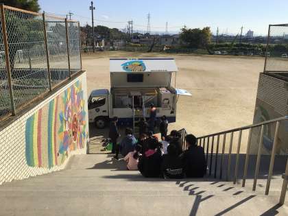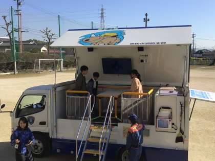 6年生は地震体験車での体験を行いました。