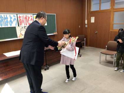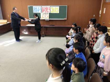 23日、オンラインによる全校集会で、理科研究や赤い羽根の募集作品等で優秀だった子たちへの表彰伝達が行われました。