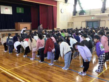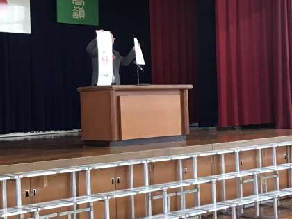 朝のあいさつや、校歌斉唱の後、校長先生の話を聞きました。