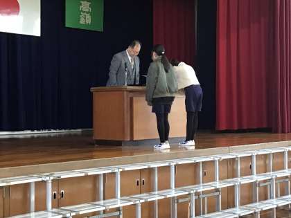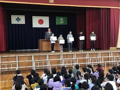 集会では、書き初め大会の表彰や読書感想画の表彰、校長先生からのお話などがありました。