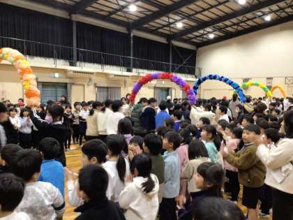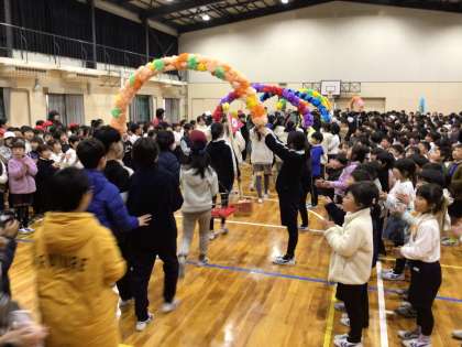 6年生を送る会のラストは在校生によるフラワーアーチです。