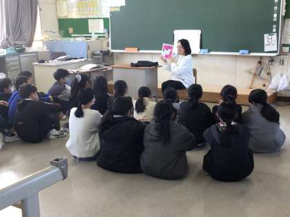 本校は、日本語と英語の2つの読み聞かせグループの方たちが、月に2回来てくださってお話しをしてくださっています。