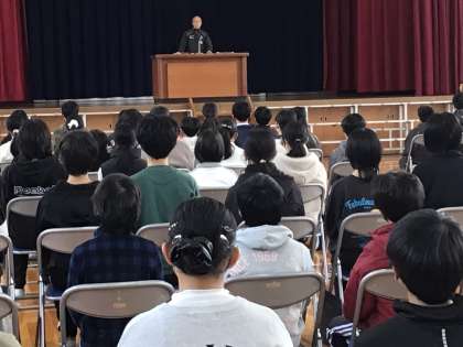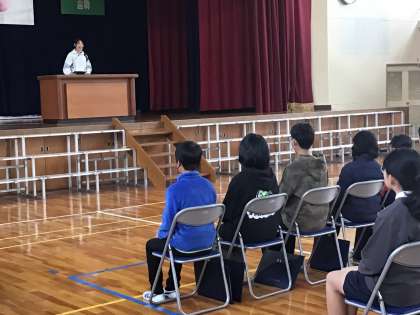 予行練習では、校長先生の代わりに志賀先生が、来賓の代わりに楽満先生が、それぞれ6年生へのお祝いの言葉を話しました。