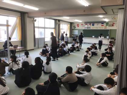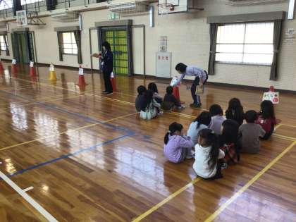 1年生は、下校の並び方を練習しています。
