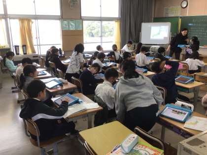 4年生は社会科でタブレットを使って学習します。