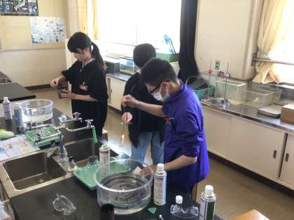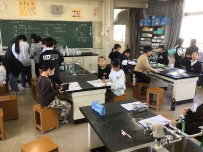 6年生の理科の実験の様子です。