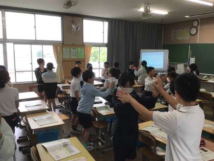 4年生の音楽です。「小さな世界」をリズムに合わせて歌っています。
