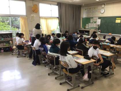 5年生の外国語です。ALT による授業です。