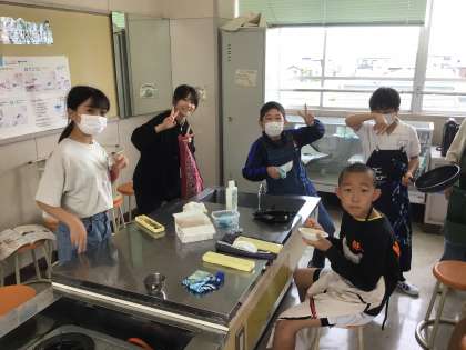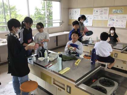 6年生の家庭科調理実習です。野菜炒めを作りました。 後片付けの様子です。
