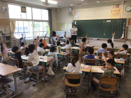 2年生の授業の様子です。手の上がり方がすばらしい!