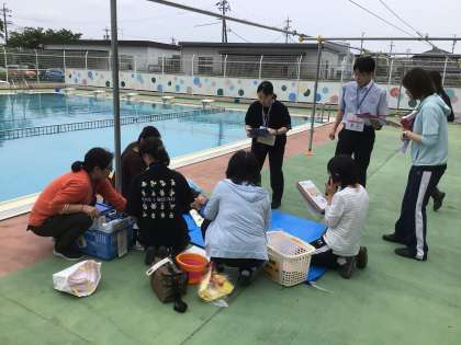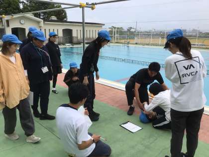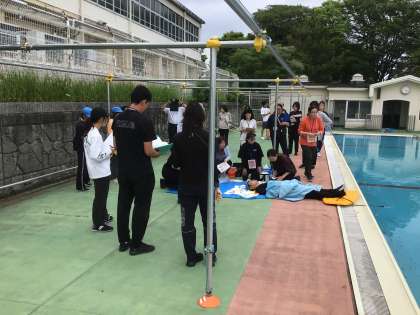 今日は、プールで子どもが溺れたことを想定して行いました。