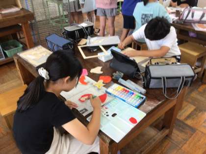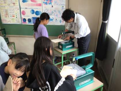5年生の図工です。電動糸ノコギリを使って、木製パズルを作ります。