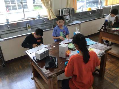 6年生の図工です。 歯車を使ったおもちゃ作りです。