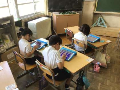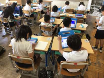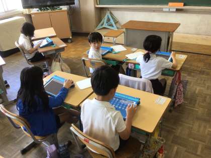 2年生は、タブレットを使って、クイズ作りです。