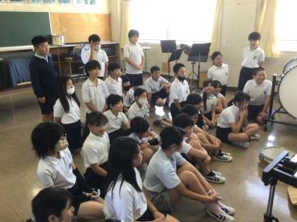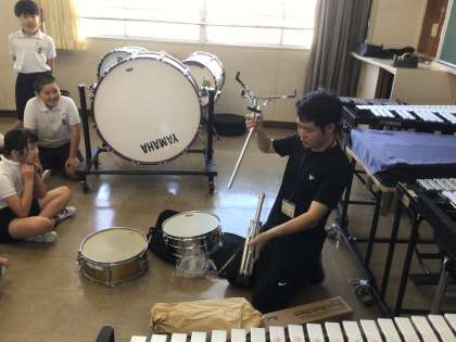 5年生の音楽です。 新しい楽器を見ています。