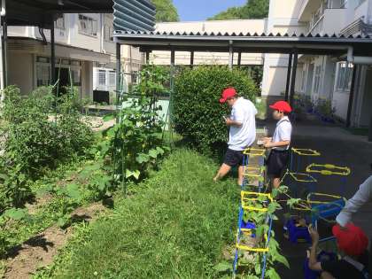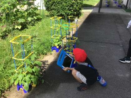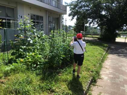 5組の子はタブレットで植物の写真を撮ります。